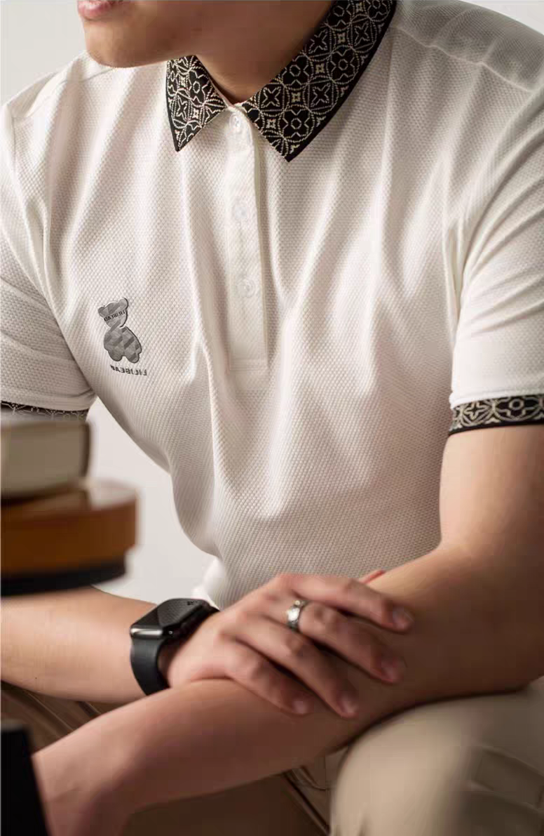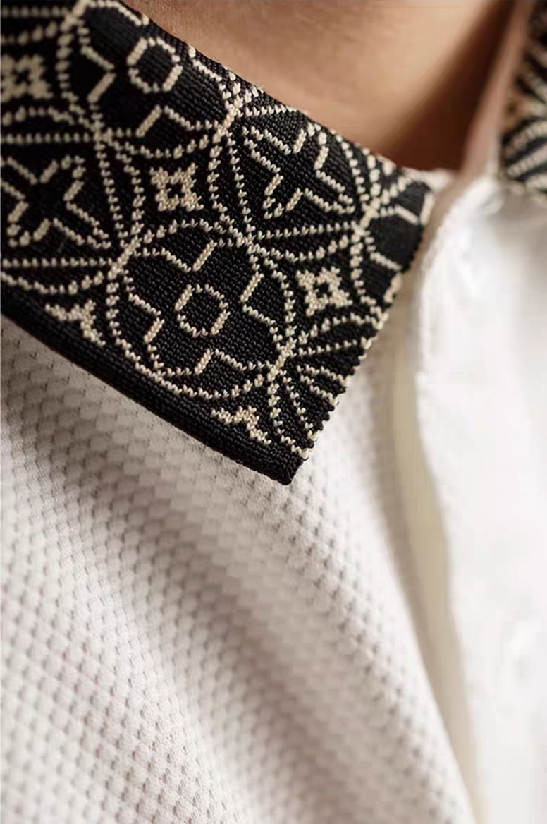 Where timeless design meets elevated detail — the Eclipsed Aura Polo captures a bold, refined presence with every stitch.